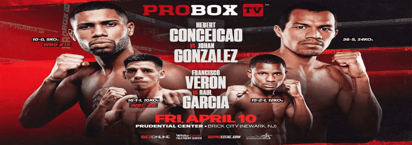 ProBoxTV Travels To Prudential Center In Newark, NJ, This Friday, April 10th, As Hebert Conceicao Sousa Battles Power-Punching South American Johan Gonzalez In Middleweight Main Event!