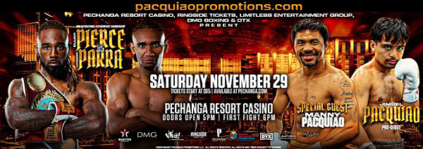 Elijah Pierce (21-2, 17 KOs) vs. Lorenzo Parra (23-1, 17 KOs)