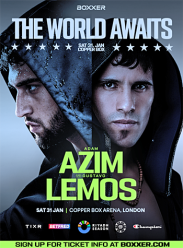 Azim (14-0, 11 KOs) is widely regarded as one of the most exciting talents in the sport today. Blessed with prodigious skill and lightning-fast hands, the 23-year-old has been fast-tracked toward world title contention.