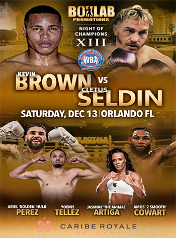 contenders and emerging stars in front of global media, industry leaders, and boxing royalty. The 12-round main event will feature undefeated Cuban standout Kevin “Alfa” Brown (8-0, 3 KOs) against