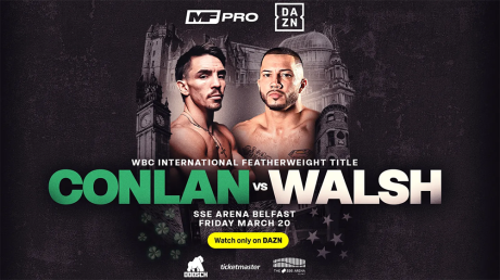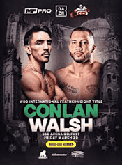 (March 12th) Michael "Mick" Conlan makes his first appearance in Belfast since December 2023 when he defends the WBC International Featherweight Title against undefeated American, Kevin "King" Walsh in a 10-round contest at the SSE Arena. The event is promoted by MF Pro and broadcast live and exclusively on DAZN worldwide.