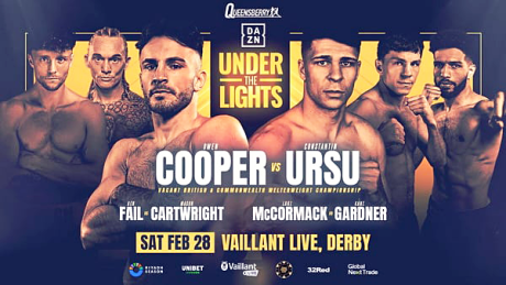 Tickets for ‘Under the Lights’ - Cooper vs Ursu - at Valliant Live, Derby on Saturday, 28 February can be purchased from ticketmaster.co.uk. The Venue and Queensberry Presales begin at 12pm on Monday, 19 January. The General sale starts at 12pm on Tuesday, 20 January. Don’t miss it!