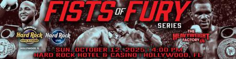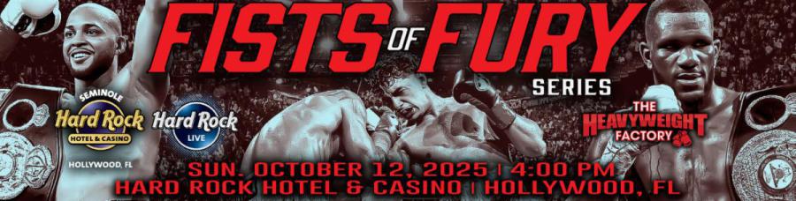 (October 1st) On Sunday, October 12, Kris Lawrence’s The Heavyweight Factory will present the eighth installment of the “Fists of Fury” boxing series at Hard Rock Live at Seminole Hard Rock Hotel & Casino Hollywood in Hollywood, FL, featuring former Cuban amateur star and red-hot middleweight prospect Yoenli “Yoyo El Diablo” Hernandez (8-0, 7 KOs) facing Mexican spoiler Carlos Mohamed Rodriguez (16-14-1, 7 KOs) of La Paz, Baja California Sur, Mexico in the 10-round main event.