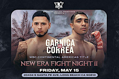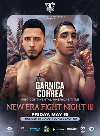(April 14th) A high-stakes Northern California rivalry will take center stage on May 15, 2026, as undefeated Oakland native Anthony Garnica faces San Jose’s seasoned contender Eros Correa for the WBC Continental Americas Title at New Era Fight Night III, presented by Showtime Boxing Promotions. Taking place at Thunder Studios in Long Beach, California, the bout brings together two of NorCal’s top fighters in a pivotal clash with major implications for the bantamweight division. The event will be televised live on FOX Deportes, bringing the action to a national audience.