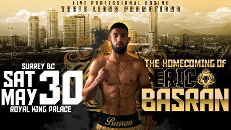 (April 22nd) Three Lions Promotions will present “The Homecoming” on May 30 at Royal King Palace in Metro Vancouver, British Columbia, with Canadian lightweight prospect Eric Basran set to headline the card in front of a home crowd. Basran will face Chilean Lightweight Champion, Sebastian “Cerberus” Caucaman in a 10-round main event for the vacant WBC International Silver Lightweight title.