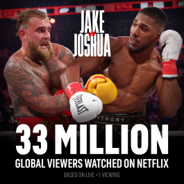 *This slow-motion clip of Anthony Joshua knocking out Jake Paul is now the highest performing clip from a Netflix live event ever with more than 214 million impressions across Netflix social channels.