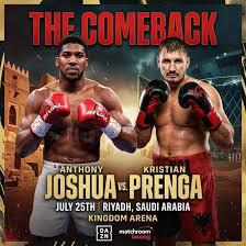 (April 27th) His Excellency Turki Alalshikh, Chairman of the General Entertainment Authority of the Kingdom of Saudi Arabia, today officially announced that two-time unified world heavyweight champion Anthony Joshua (29-4, 26 KOs) will return to the ring on Saturday, July 25, 2026, in Riyadh, Saudi Arabia, facing hard-hitting Albanian heavyweight Kristian Prenga (20-1, 20 KOs) in a scheduled 12-round bout.