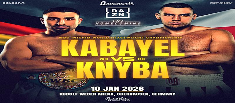 (November 4th) Bochum, Nordrhein-Westfalen, Germany, undefeated WBC Interim Heavyweight Champion, Agit Kabayel will make his first defense on home soil when he faces towering Polish contender, Damian “Polish Hussar” Knybaon January 10, 2026, at the Rudolf Weber Arena in Oberhausen, Germany.