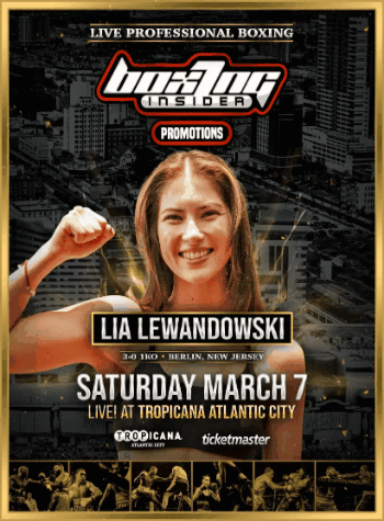 This March 7th event marks her second with Boxing Insider Promotions, and she’s excited about the atmosphere at Tropicana. Boxing Insider Promotions returns to Tropicana Atlantic City on March 7th with a card that continues the promotion’s revival of professional boxing at the venue after a seven-year absence.