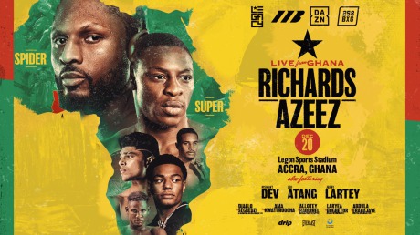The historic evening is headlined by two of Britain’s leading Light Heavyweights as South London's Craig 'Spider' Richards (19-4-1, 12 KOs) and Dan 'Super' Azeez (22-2-1, 14 KOs) collide in the capital of Ghana at Accra’s Legon Sports Stadium.
