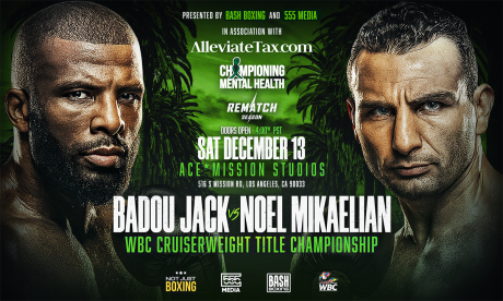 (October 31st) The fight for redemption returns to Los Angeles as Championing Mental Health presents CMH 2: Rematch Season on Saturday, December 13 at Ace * Mission Studios in Los Angeles. The event, presented by Bash Boxing and 555 Media, features the highly anticipated WBC Cruiserweight World Championship rematch between reigning champion Badou Jack (29-3-3, 17 KOs) and former titleholder Noel Mikaelian (27-3, 12 KOs), two of boxing’s elite who have been fixtures in the world and Ring Magazine rankings for over a decade.
