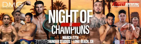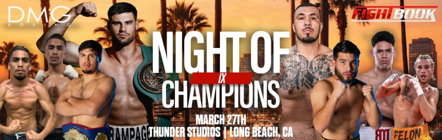 (March 25th) DMG Boxing returns to Southern California with one of its most anticipated events of the year, “Night of Champions IX,” taking place at Thunder Studios in Long Beach, California, featuring a stacked lineup of rising prospects, international contenders, and fan favorites.
