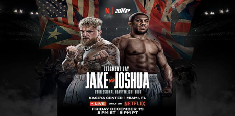 Most Valuable Promotions (MVP) and Netflix today announced Jake vs. Joshua: Judgment Day, a colossal global showdown between boxing’s biggest disruptor, international superstar and WBA #14-ranked cruiserweight Jake “El Gallo de Dorado” Paul (12-1, 7 KOs) and two-time unified WBO, WBA, and IBF heavyweight world champion, Olympic gold medalist and knockout machine Anthony “AJ” Joshua (28-4, 25 KOs). Jake vs. Joshua: Judgment Day will be a sanctioned, professional heavyweight bout contested over 8, three-minute rounds with 10oz gloves. The fight is set to take place on Friday, December 19 at the Kaseya Center in Miami, Florida, and will stream live globally, only on Netflix at no additional cost to its 300+ million members.