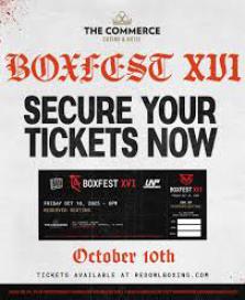 Boxfest XVI takes place on Friday, October 10, 2025 at the Commerce Casino, located at 6131 Telegraph Rd, Commerce, CA 90040. Must be 21. Play responsibly. Gambling problem? Call 1-800-GAMBLER or visit www.problemgambling.ca.gov