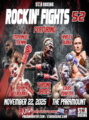 (November 6th) Star Boxing is proud to announce that its critically acclaimed “Rockin’ Fights” series returns to The Paramount in Huntington, New York on Saturday, November 22, 2025, for its 52nd edition, once again showcasing some of the region’s most exciting and undefeated talent in what has become Long Island’s premier boxing tradition.