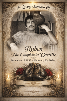 In the years following his retirement, Castillo faced significant health challenges, including a diagnosis of Hodgkin’s Lymphoma. He met those challenges with the same resilience that defined his ring career. He passed away on February 25, 2026, surrounded by his family in Beaumont, California. He is survived by his wife, Cindy, their six children, and a wide circle of friends and admirers across the boxing community.