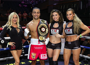 David "King David" Malul (now 2-0, 2KOs), once again had The Paramount crowd energized and mesmerized for his second professional fight. Malul gave the raucous crowd another memorable moment when he uncorked three devastatingly powerful blows to the head of his opponent, Zachary "Mr. Sippi Babi" Davis to secure the third-round knockout.