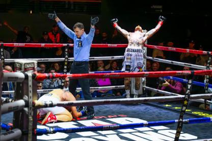 fight and then hurt Monrreal with two hard right hands along the ropes. Monrreal roared back however and uncorked a huge right hand that dropped Cassese for the second time. Cassese tried to get to his feet but fell back to the canvas and the fight was over.
