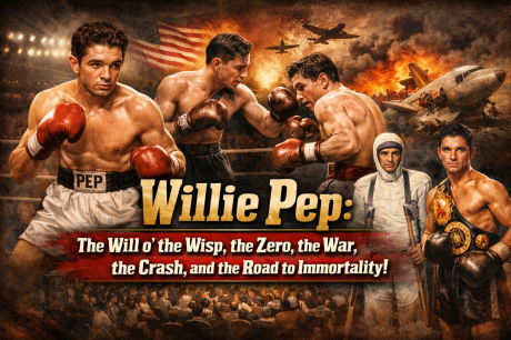 (March 19th) Eighty three years ago today (1943) at a packed Madison Square Garden in New York City, one of boxing's most astonishing undefeated streaks came to an end. Twenty-year-old featherweight champion Willie Pep — the dazzling stylist known as "Will o' the Wisp" — entered the ring with a staggering 62-0 record. By the time the final bell rang ten rounds later, Pep had suffered the first defeat of his professional career, dropping a unanimous decision to the rugged former lightweight champion Sammy Angott. In the long view of boxing history, the loss barely registers as a setback. But on that cold wartime night in Manhattan, it was a reminder that even the most elusive fighters can be dragged into a fight.